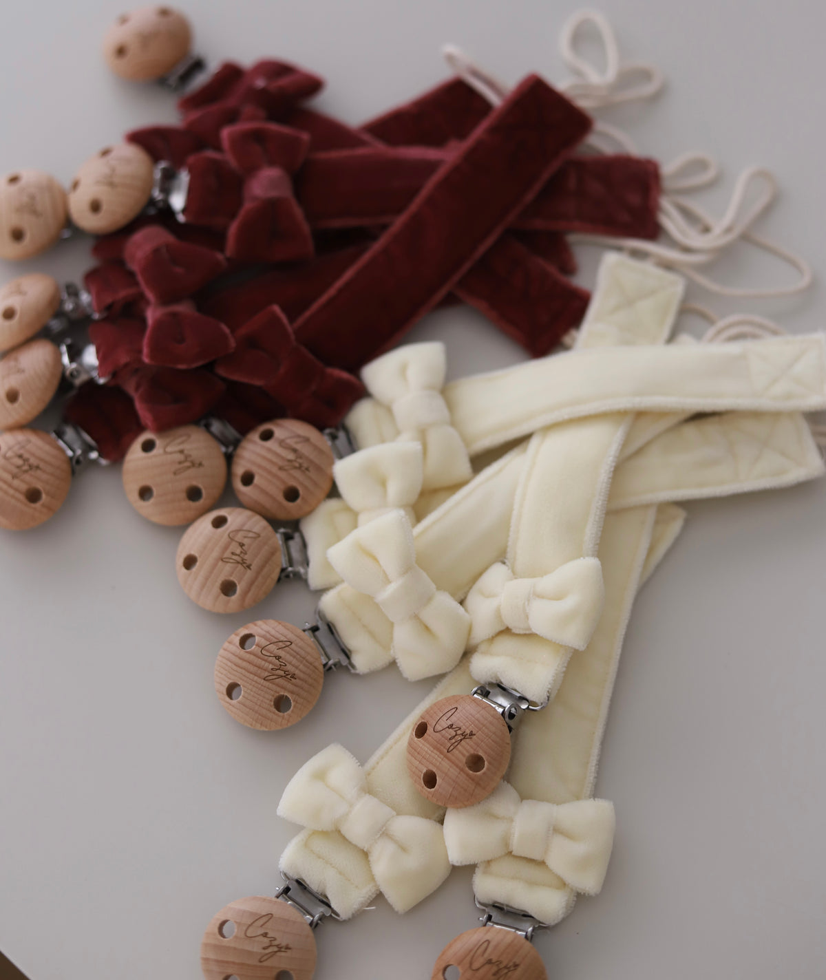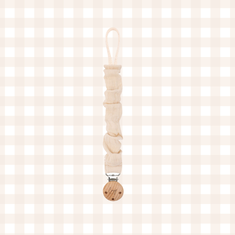 Delicado, romântico e pronto a usar. O prendedor de chupeta com folhos é o toque especial que combina estilo e praticidade.